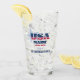 Maine personalisiertes Glas. Ein lebendiges Typografie-Design, das Maines Bedeutung in der amerikanischen Geschichte unter Verwendung fett gedruckten Textes und der Farben der amerikanischen Flagge zeigt. Personalisieren Sie das Glas vorne und hinten mit Ihrem Namen in der Vorlage.