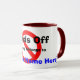 Mains - ma tasse : les grandes "mains outre de" et l'espace pour VOTRE nom en texte au-dessus d'une halte/d'arrêt se connectent la tasse de qualité dans un style et une couleur de votre choix.