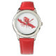 Kinderuhr aus Edelstahl mit rotem Lederarmband