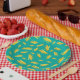 Niedlicher Mais auf dem Cob-Muster mit aquamariner Hintergrundfarbe. Ideales Geburtstagsgeschenk, Kinderzimmer-Dekoration, Kinderspielkunst, Wohngestaltung, Weihnachtsgeschenk oder Geschenk für jeden anderen besondere Anlass.