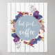 Mais premier café, Fleurs, Bleu, affiche rustique