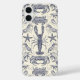 Crustacean Damask, ursprünglich mit Tinte gezeichnet. Verschiedene essbare Krabben, blauer europäischer Hummer, Garnelen, Garnelen, Krabben, Kamelen-Muschel, Muschel-Muschel, Rasierapparat-Muschel und Seesterne. Erhältlich in mehreren Farben.