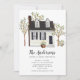 Annoncez votre nouvelle adresse avec l'illustration d'une maison de cape blanche aquarelle avec des arbres. Retournez notre faire-part mobile pour voir un retour de coordination pour une touche spéciale supplémentaire.