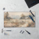 Ce tapis de bureau est orné d'un tableau représentant un paysage qui comprend une maison de campagne à côté d'une forêt. Ce design a une ambiance relaxante avec ses couleurs douces et muettes.
