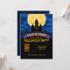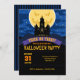 Invitation de fête d'Halloween avec une maison hantée et une déplaisante lune.