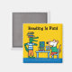 Die Bibliothek macht so viel Spaß! Maisy und Charley genießen jeden Augenblick ihrer Zeit in der Bibliothek in dieser Lucy Cousins-Illustration aus ihrem Buch "Maisy Goes to the Library" (herausgegeben von Candlewick Press). Die beiden Freunde sind von Büchern umgeben; Maisy sitzt am Tisch und liest ein Buch über Fisch, während Charley Bücher auf seinem Kopf balanciert!