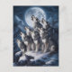 Ein Rudel majestätischer Wölfe steht stolz auf einem Berggipfel unter dem strahlenden Licht eines Vollmonds.