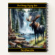 Ein prächtiger Elch liegt stolz in der Nähe eines ruhigen Wasserfalls, umgeben von üppigen Wäldern. Morgenlicht tanzt auf dem Wasser und schafft eine friedliche Atmosphäre in der Natur. HINWEIS zum Ändern von Text- oder Grenzfarben mithilfe des Entwurfstools Bearbeiten