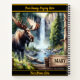 Ein majestätischer Elch liegt in der Nähe eines ruhigen Flusses und blickt auf einen Wasserfall, der sich in Kaskaden abspielt. Grüne Bäume umrahmen die Szene und schaffen eine friedliche Verbindung zur Natur. HINWEIS zum Ändern von Text- oder Grenzfarben mithilfe des Entwurfstools Bearbeiten