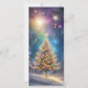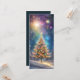 Ein majestätischer Weihnachtsbaum mit bunten Lichtern steht in einem schneebedeckten, bezaubernden Wald. Zwergsterne füllen den pulsierenden Nachthimmel und beleuchten die ruhige Winterlandschaft.