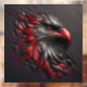 Ein abstraktes Portrait eines herrlichen Adlerkopfes in einem kunstvollen Stil. Der texturierte Holzkohlegranit bietet einen atemberaubenden Hintergrund, da Kopf und Federn künstlerisch in Blut rot und Kohle gefärbt sind. Das Ergebnis ist ein hervorragender 3D-Effekt, der die wahre Schönheit dieser majestätischen Kreatur zeigt.