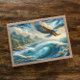 Ein Gemälde eines majestätischen Adlers, der über einer abstürzenden Welle aufragt und mit aufwändigen Details im Öl vor einem goldenen und marmorfarbenen Hintergrund dargestellt ist, der Stärke, Patriotismus und Freiheit symbolisiert.