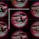 Wunderschönes Rooster- und Hen-Porträt, umgeben von tiefroten und gerahmten schwarzen Linien