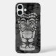 Graues colorway. Ein lachender tiki Entwurf mit einer Batikbeschaffenheit gänzlich. Dieses tiki ist von den Entwürfen erinnernd, die in den Vintagen aloha Shirts in den Vierzigern u. in den Fünfziger Jahren verwendet werden. Dieser Entwurf kommt in einige colorways.