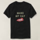 Make My Day is a sarcastic challenge to the viewer. It suggests the wearer welcomes the chance of a confrontation, because they will surely win. Contains the words and a snarky sneer below.