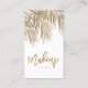 Eine elegante moderne, stilvolle Make-upkünstler-Geschäftskarte mit eleganter Skripthandbeschriftungs-Arttypographie mit Goldrahmen auf einem Imitatgoldpalmeblatt auf kundengerechtem Weiß