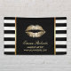 Makeup Artist Gold Lips Moderne Black & White Stripes Banner. Passende Visitenkarten.