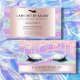 Platinsilber metallische Imitate Folie Glitzer und ein regenbogenfarbiger simulierter holografischer Druck flüssiger Textur Set der Ton für diese anpassbare Visitenkartenvorlage, mit Augenlidern mit einem weichen pastellfarbenen opal leuchtende irisierende Farbverlauf Textur Auschatten und simulierte Quarzgemeine.