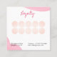 Dieses minimalistische Design zeigt eine fesselnde Schwarz-Weiß-Illustration langer, üppiger Wimpern, die Einfachheit und Eleganz vereinen. Dieses Design wurde für Makeup-Künstler, Lash Extension-Spezialisten, Brow Artists, Skincare-Profis und Beauty-Stylist konzipiert und bietet eine saubere und moderne Darstellung Ihrer Marke, die Ihr Know-how in der Beauty-Branche unterstreicht. Entdecken Sie unsere Anpassungsoptionen, um sicherzustellen, dass dieses Design nahtlos mit Ihrem einzigartigen Stil und Ihrer Markendarstellung harmonisiert. Wenn Sie dieses Design auf anderen Objekten sehen möchten oder sich an individuelle Projekte gewöhnen möchten, zögern Sie nicht, sich zu orientieren. Eine Treuekarte, die mit Ihren Daten leicht personalisierbar ist. Rosa Aquarellpinsel im Hintergrund.