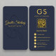 Die schicke, blaue und goldene Makeup Künstlerkarte mit einem fetten Monogramm, eleganter Typografie und modernem QR-Code. Ideal für Makeup-Künstler, Beauty-Profis und Salon-Besitzer, die eine stilvolle, berufliche und luxuriös inspiriert Brandingkarte gewollt haben.