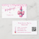 Ein stilvoller weißer Hintergrund mit einem rosa Lippenstift auf der Vorderseite. Mit rosa Konfetti, Glitzern. Personalisieren Sie Ihren Namen, Ihren Titel, Ihre Kontaktdaten und Ihren eigenen QR-Code und fügen Sie ihn zu Ihrer Website-Adresse oder Ihrem Social-Media-Konto hinzu.