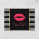 Makeup Artist Red Lips Modern Silver Strips Visitenkarte