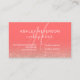 Eine elegante, moderne Monogramm , stilvolle Makeup-Künstler Visitenkarte mit eleganter, einfacher Handschrift Stil Typografie in Weiß auf einem Imitat Rose Gold Glitzer und Korallen trendig und elegante Hintergrund. Alle Texte sind anpassbar, fügen Sie Ihre sozialen Medien.