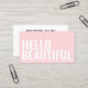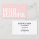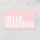 Einfache, trendige, minimalistische Visitenkarte in Pastellrosa mit fett weißem Text auf der Vorderseite der Karte: Hallo schön. Ideal für einen Schönheits- und / oder Friseursalon, für Haarstylisten, Stylist, Makeup-Künstler etc.