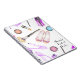 Ein Notizbuch, um alle Ihre Lieblingsschminke zu setzen, sieht hinein.