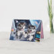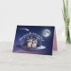 A dog Valentine's Day card featuring a Malamute husky couple in a flying saucer going to the moon.