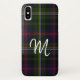 Hübscher iPhone X Fall getan im traditionellen Malcolmtartan Clan des dunkelgrünen, dunkelblauen, Roten, Schwarzen, Gelben und Himmelblaus kariert. Personifizieren Sie das weiße Buchstabemonogramm, für selbst oder als große Geschenkidee. Stilvolle Weise, Ihr elektronisches Gerät zu schützen.