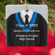 Personalisiertes zweiseitiges Abschluss-Sake-Ornament, das in schwarz-blau-schulischen Kronfarben und Krawatte für den besonderen männlichen Senioren dekoriert ist. Viele andere Farbkombinationen für Männchen und Weibchen. Bearbeiten Sie im einfachen Texteditor Zazzle auf Vorder- und Rückseite benutzerdefinierte Texte.