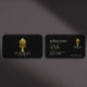 Die Visitenkarten aus schwarzem und metallischem Gold zeichnen sich durch ein einzigartiges und modernes Design aus, das sich raffiniert / hochwertig und männlich anfühlt und sehr denkwürdig und aufmerksam ist. Auf der Rückseite dieser Karten befindet sich eine solide simulierte Silhouette aus metallischem Gold eines Malpinsels, die die Form einer Zuhause bildet, und zwei Textzeilen darunter. Die Silhouette ist in Weiß- und Goldfarben gehalten, ebenso wie der gleiche Farbverlauf aus Metall, der in der rechten oberen Ecke eine schlichte Form aufweist.