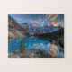 Dieses Foto kennzeichnet See-Moraine, in Lake Louise, Alberta. Dieser Schuss ist von der Spitze des Felsenstapels ein sehr klassischer Schuss. Die Reflexion war am Sonnenuntergang mit der Farbe in den Wolken gerade atemberaubend.