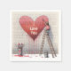 Ein kleines Mädchen auf einer Leiter malt ein großes rotes Herz an einer Ziegelwand, wobei die Farbe nach unten tropft und in einem Eimer bürstet. Text kann bearbeitet oder gelöscht werden.