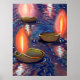 Zeichnung von beleuchteten Tiefen schwimmend und reflektiert auf Wasser.