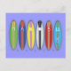 Malibu Beach, das ist eine Lebensart. Sechs farbige Surfbretter auf blauem Meerspray, die den Lebensstil von Sand, Meer und Surfen in Südkalifornien darstellen. Mit diesem einzigartigen, im Sommer farbenfrohen Design der Surfbretter von Malibu Beach macht das Hotel Spaß. Genießen Sie das kalifornische Image und den kalifornischen Lebensstil überall, indem Sie diese stilvolle Postkarte aus dem Golden Staat am Pazifik schicken.