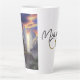 Große Latte Tasse mit MalkieriCon Logo und Gemälde von The Golden Crane Flies.