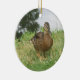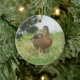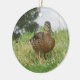 Ein Foto einer wunderschönen weiblichen Stockente, die sich im Gras durch einen Teich auf einem Zierwerk amüsiert! Dieses Ornament ist ideal für Weihnachten oder zu jeder Jahreszeit!
