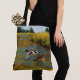 Männliche und weibliche Stockenten fliegen über einen goldenen Teich, Wasser-Rippling, um die Farben der Hintergrund Herbstblätterung in der Sonne leuchten. Realistische Kunstwerke, die aus einer Ölmalerei des Künstlers Crista S. Forest entstanden sind.
