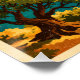 Travel poster featuring Mallorca, Spain, in a classic retro travel-poster style. Central focus on the dramatic Serra de Tramuntana mountains overlooking turquoise Mediterranean coves, with golden sandstone villages, olive groves, and winding coastal roads along the cliffs. A historic cathedral silhouette rises near the shoreline while sailboats glide across crystal-clear waters under warm island sunlight. Rich Mediterranean color palette of deep turquoise sea, sunlit stone beige, olive green, and glowing sunset gold. Clean graphic illustration with subtle vintage grain texture. Bold vintage typography headline: “MALLORCA – GEM OF THE BALEARIC ISLANDS”. Vertical 2:3 layout, high-resolution, print-ready.