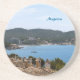 Aussicht auf den blauen Himmel, das Meer und die Dächer der Stadt, Mallorca, Spanien. Maleffekt