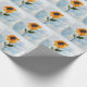 Einzigartiges Stehendes Watercolor Sonnenblume und Sky Blue Abstrakt Painting Repeated Pattern Wrapping Paper.