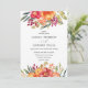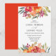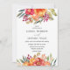Das elegante und rustikale Design besticht durch einen Kranz aus hübsch gestrichenen Acrylfarben in Rosa und Gelb, mit Pop aus lila und grünen Blätter und Blattwerk. Umkehrende Karte in einer vollständig anpassbaren orangefarbenen Farbe Diese Einladung ist perfekt für eine rustikale elegante Hochzeit oder Sommer- oder Frühjahrsfeier