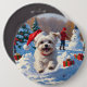 Malteser Hund läuft im Schnee mit Weihnachtshut Button