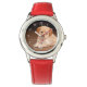 Kinderuhr aus Edelstahl mit rotem Lederarmband