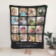 Erstellen Sie eine personalisierte Sherpa-Sake-Decke für Ihre Mutter mit 16 runden quadratischen Rahmen, die Fotos ihrer Kinder, Familie, Haustiere, Reisen oder andere besondere Erinnerungen und zwei Zeilen anpassbaren Textes, wie "We Liebe You Mama" und die Namen ihrer Familienmitglieder, in eleganter weißer Typografie auf schwarzem Hintergrund.