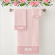 Mama Text auf hellrosa Schattierungen Bath Handtuch Set. Text kann personalisiert sein. Text nur auf einer Seite.