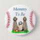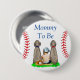 Mami, um Baby Dusche Knopf. Baseball-Babydusche. Kleiner Baby in einem Baseballhut, neben seinen zwei Hundefreunden sitzend.