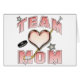 Ein Hockeystick und ein sternkreuzer Hockeypuck dienen als Hintergrund für unser rosa Herz und die Worte "Team Mama" für dieses Eishockeyteam-Design.